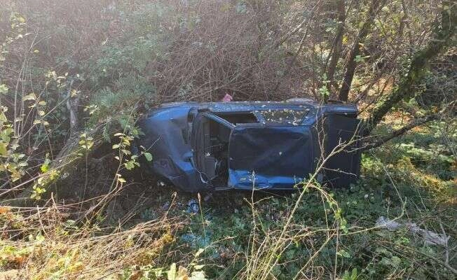 Yoldan çıkan araç yaklaşık 30 metre uçuruma yuvarlanıp ağaçlara çarparak durabildi.