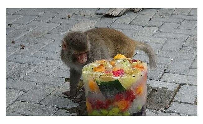 Konya'nın Karatay ilçesinde bulunan Karatay Belediyesi Hayvanat Bahçesi’nde hava sıcaklığı yaklaşık olarak 41 dereceye ulaşınca sıcaktan bunalan hayvanlara buzlu meyve verildi. Maymun ve boz ayıya, içinde meyvelerin bulunduğu buz kokteylleri verildi. Sıcaktan hareketleri de yavaşlayan hayvanlar, iştahla buzlu meyveleri tüketti.