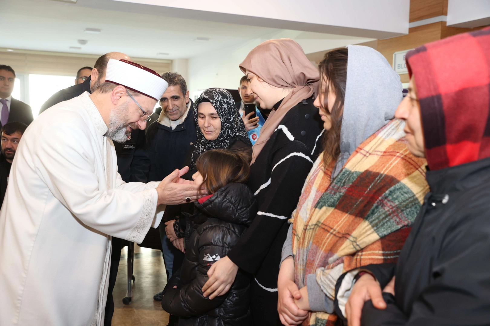 Diyanet İşleri Başkanı Ali Erbaş, Kahramanmaraş merkezli depremlerin ardından, Diyanet İşleri Başkanlığı Rıfat Börekçi Eğitim Merkezi'nde kalan depremzede aileleri ziyaret etti