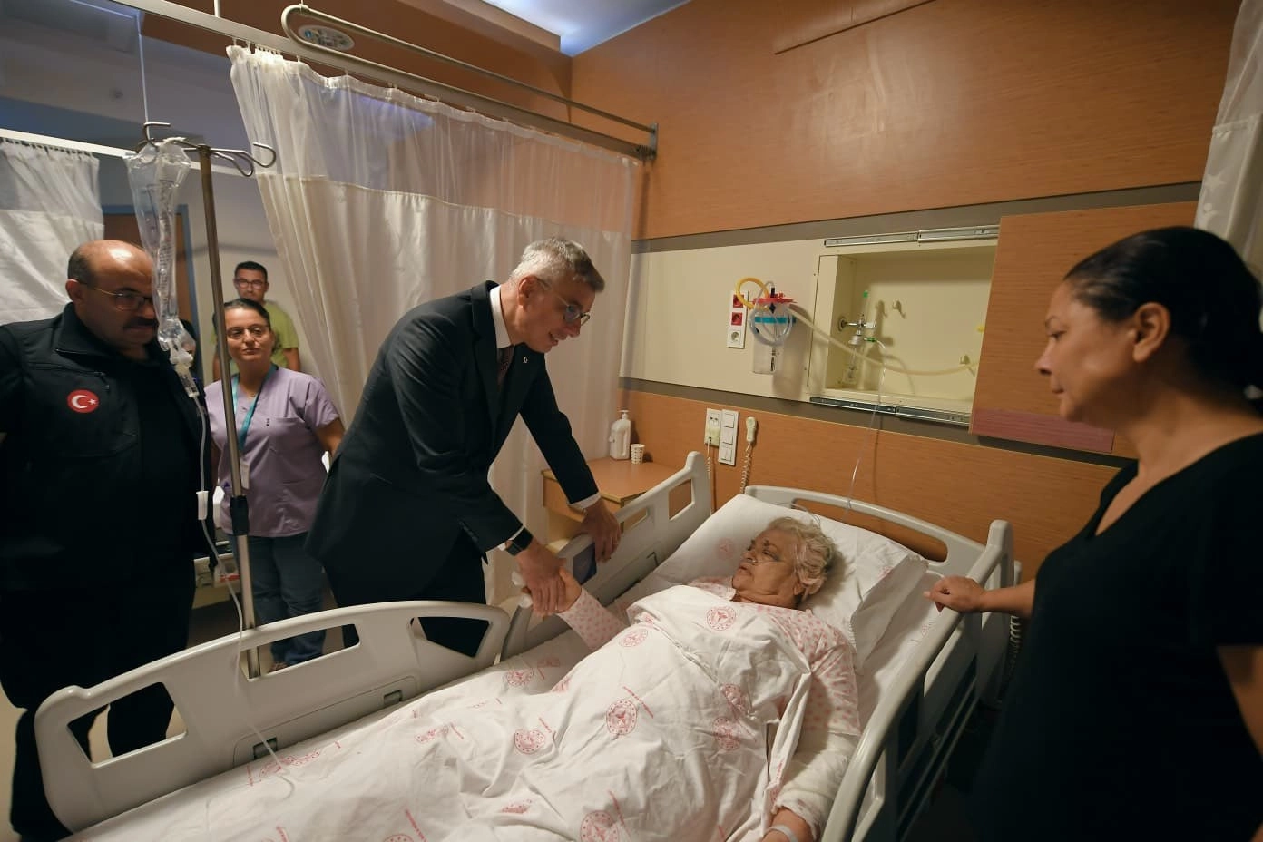 Ziyaretlerde yaralıların sağlık durumları hakkında bilgi alan Bakan Memişoğlu, tedavi süreçlerinin titizlikle takip edildiğini vurguladı ve afetzedelere moral desteği sağladı.