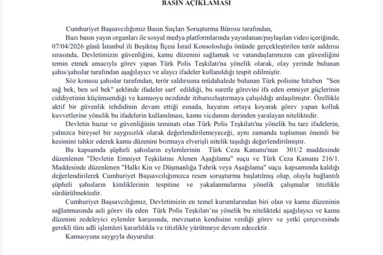 Açıklamada, aktif bir güvenlik tehdidinin devam ettiği sırada görevini yerine getiren kolluk kuvvetlerine yönelik bu tür ifadelerin kamu vicdanını zedelediği ve kamu düzenini bozabilecek nitelik taşıdığı vurgulandı.