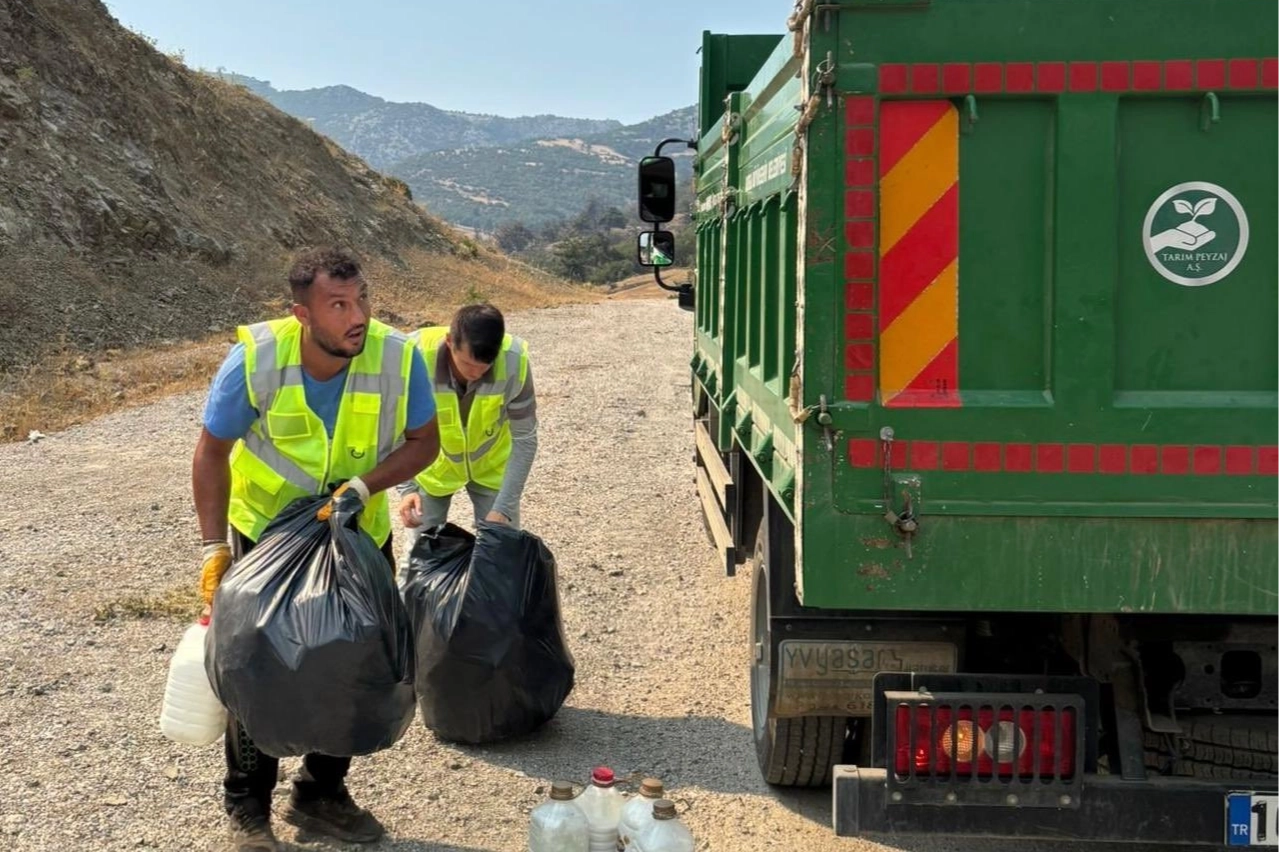 Yangın söndürme ve destek faaliyetleri sırasında çevreye dağılan pet şişe ve benzeri atıkların temizlenmesi için 8 araç ve 35 personelin görevlendirildiği belirtildi.