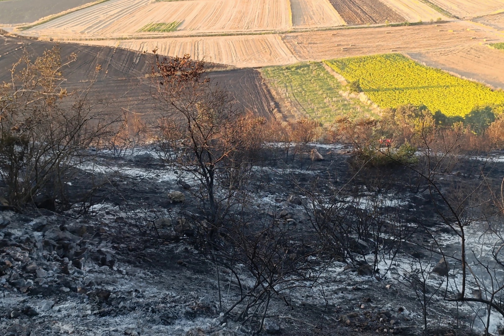 Öğle saatlerinde henüz belirlenemeyen bir nedenle başlayan yangın, rüzgarın etkisiyle zeytinlik alanlara ve anız tarlalarına yayıldı.
