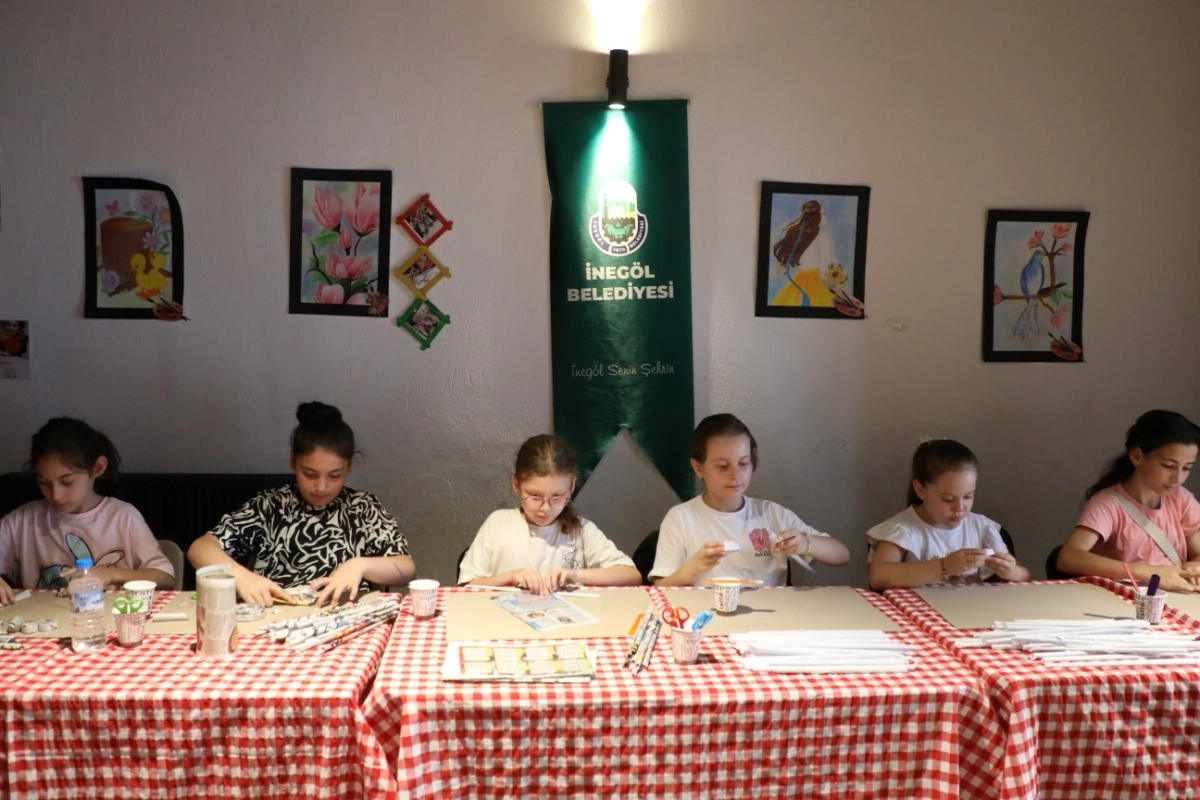 Bursa İnegöl Belediyesi yaz tatilinde düzenlediği ücretsiz Sanat Atölyesi etkinlikleriyle çocukların kaliteli ve tatil süreci geçirmesini sağlıyor. Minikler çocuk sanat atölyelerinde hem eğleniyor hem öğreniyor.