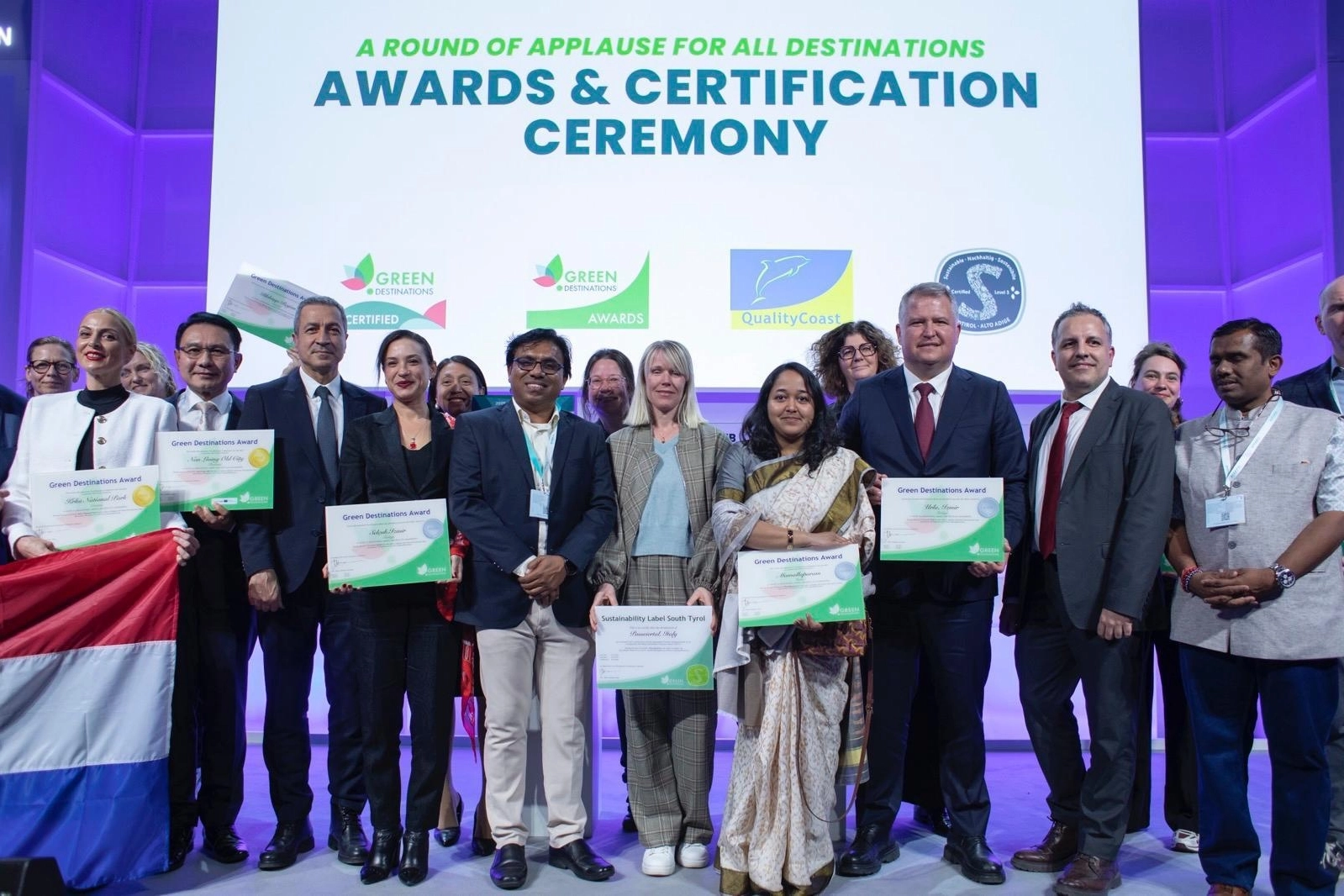 İZMİR (İGFA) - Uluslararası Sürdürülebilir Turizm Konseyinin (GSTC) akredite kuruluşu olan Green Destinations (Yeşil Destinasyonlar) tarafından verilen ödül ile İzmir, sürdürülebilir turizm alanında önemli bir başarıya ulaştı. Dünyanın en büyük destinasyon fuarı olan ITB Berlin kapsamında düzenlenen Green Destinations ödül töreninde sertifikaları Selçuk Belediye Başkanı Filiz Ceritoğlu Sengel ve Urla Belediye Başkanı Selçuk Balkan ile İzmir Büyükşehir Belediyesi bürokratları aldı.