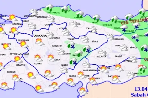 Meteoroloji Genel Müdürlüğü’nün son değerlendirmelerine göre, ülkemizin kuzey, iç ve doğu kesimleri parçalı ve çok bulutlu olacak. İç Anadolu’nun kuzeydoğusu, Batı Karadeniz’in doğusu, Orta ve Doğu Karadeniz, Doğu Anadolu’nun kuzey ve doğusu ile Mardin, Batman ve Siirt çevrelerinde aralıklı yağış bekleniyor.