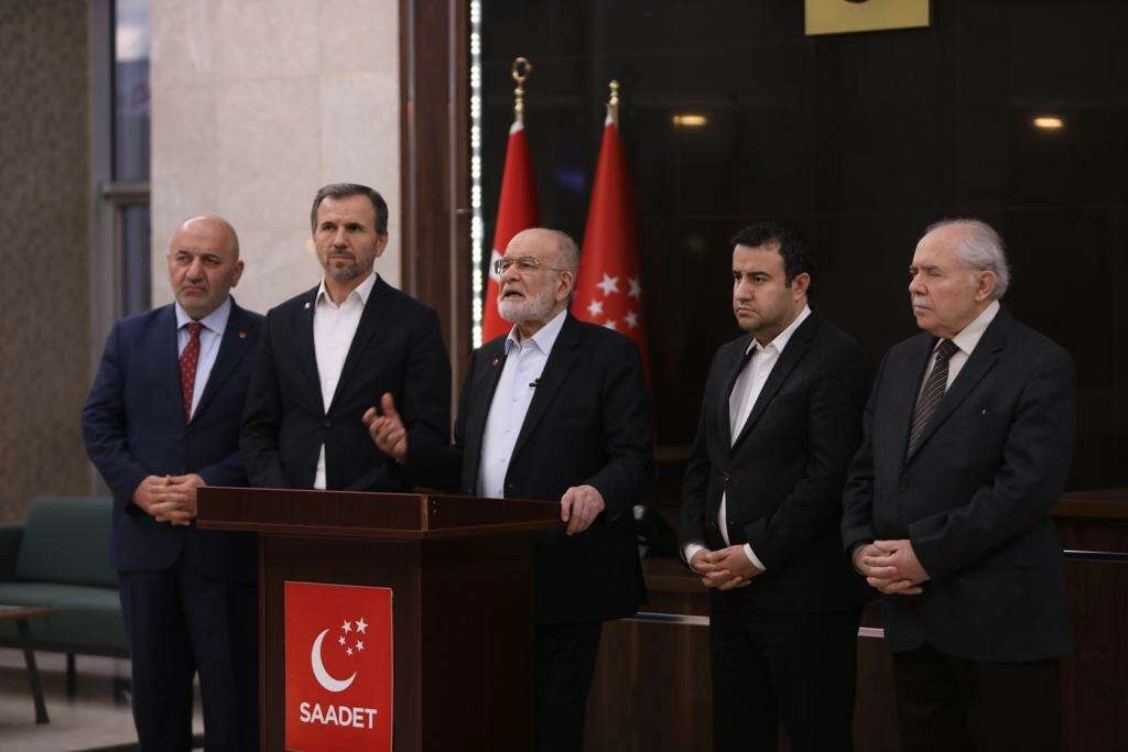 Saadet Partisi Genel Başkanı Temel Karamollaoğlu (ortada), partisinin genel merkezinde basın toplantısı düzenledi