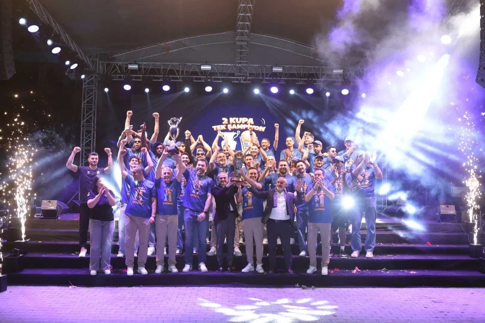 KOCAELİ (İGFA) - Türkiye Basketbol Ligi 2025-2026 Sezonu’nu şampiyon olarak tamamlayan Çayırova Belediyesi Basketbol Takımı, kupasına kavuştuktan sonra, şampiyonluk coşkusunu tüm taraftarlarıyla birlikte yaşadı. Kurulduğu 5 yıldan bu yana 5 kupa kazanarak, oynadığı tüm liglerdeki kupaları kazanan ve Basketbol Süper Ligi’ne yükselen Çayırova Belediyesi Basketbol Takımı, Çayırova Kapalı Spor Salonu’nda düzenlenen törenle kupasını teslim aldıktan sonra, ilk olarak şehir turuna çıktı.