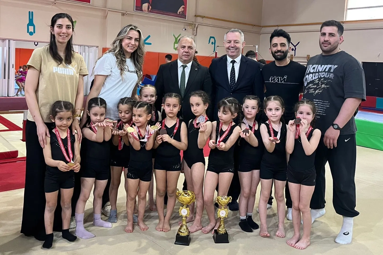 BURSA (İGFA) - Bursa'da Naim Süleymanoğlu Spor Kompleksi’nde düzenlenen TBMM Kupası’na Yıldırımlı cimnastikciler damga vurdu. Yıldırım Belediyesi Spor Kulübü, 25 farklı kulüpten 600 sporcunun katıldığı organizasyondan 6 kupayla ayrıldı. Yıldırımlı sporcular; 2021 doğumlular kategorisinde birinci, 2020 doğumlularda üçüncü, 2017 doğumlularda dördüncü, 2016 doğumlularda üçüncü, erkekler 2019 doğumlularda ise takım halinde birinci olarak büyük bir başarıya imza attılar.