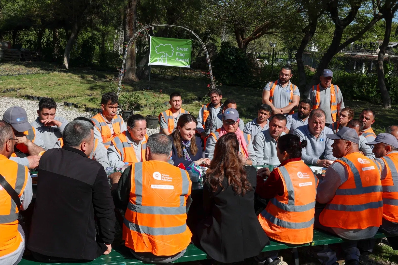 Antalya Büyükşehir Belediyesi Başkan Vekili Büşra Özdemir, Türkiye’nin ilk ve tek Yeşil Bayrak ödülüne layık görülen Atatürk Kültür Parkı’nda görev yapan Park ve Bahçeler ile Temizlik İşleri personeliyle bir araya gelerek, verdikleri emek için teşekkür etti.