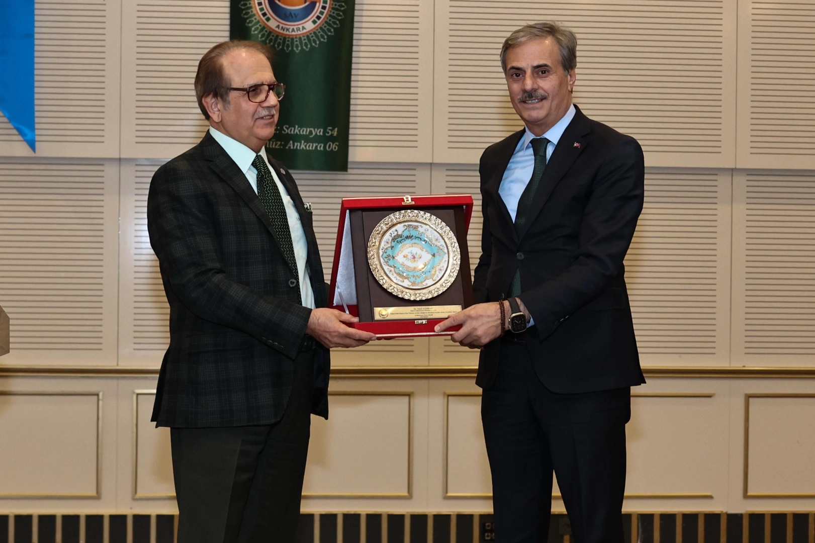 Konuşmasının ardından Vakıf Başkanı Çelik, iftar programının düzenlenmesinde büyük emeği olan Büyükşehir Belediye Başkanı Yusuf Alemdar’a katkılarından dolayı plaket takdim etti.