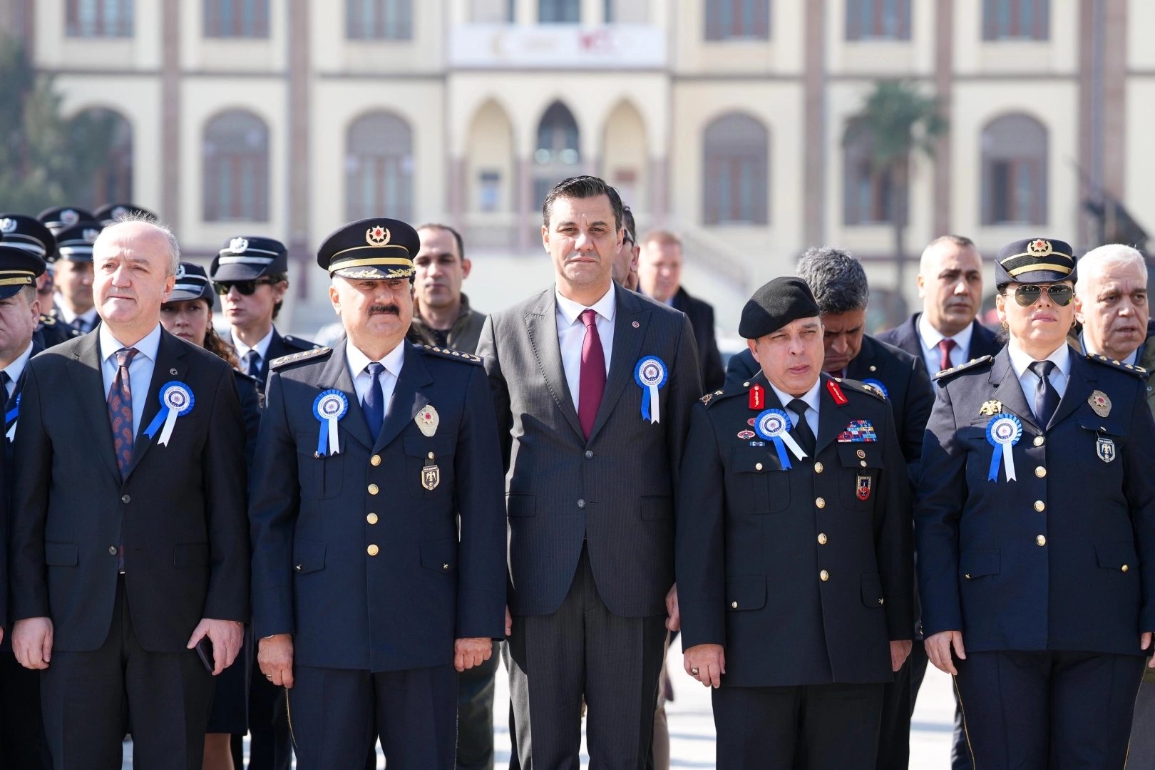 MANİSA (İGFA) - Törene; Manisa Büyükşehir Belediye Başkanı Ferdi Zeyrek, Manisa Emniyet Müdürü Fahri Aktaş, Manisa İl Jandarma Komutanı Tuğgeneral İlhan Şen, Manisa Cumhuriyet Başsavcısı Kurtça Eken, siyasi partilerin il başkanları, bürokratlar, emniyet mensupları, sivil toplum kuruluşlarının temsilcileri katıldı. Manisa İl Emniyet Müdürü Fahri Aktaş’ın, Milli Egemenlik Anıtı’na çelenk sunumunun ardından Mehmet Suphi Egemen İlkokulu öğrencilerinden oluşan mehter takımı bir gösteri gerçekleştirdi. Tören sonrası polis ekipleri konvoy düzenlendi.