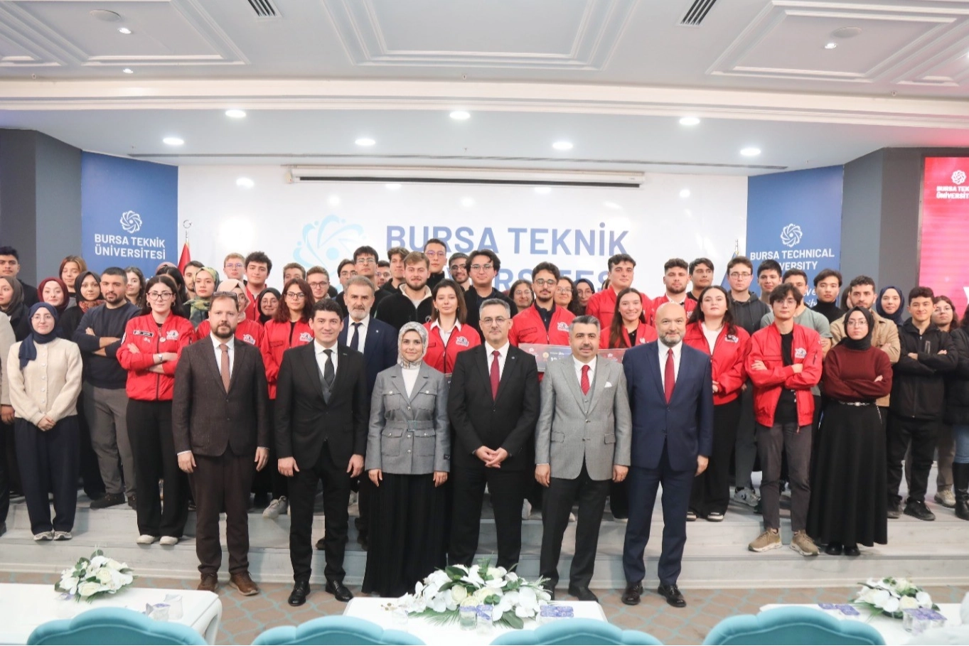 BURSA (İGFA) - Ulusal ve uluslararası yarışmalarda elde ettikleri başarılarla dikkat çeken Bursa Teknik Üniversitesi (BTÜ) öğrencileri, TEKNOFEST Teknoloji Yarışmaları’nda da her yıl önemli dereceler kazanmayı sürdürüyor. 2025 TEKNOFEST Teknoloji Yarışmaları’nda da pek çok kategoride finale kalma başarısı gösteren ve dereceler elde eden BTÜ öğrenci takımları, bu yıl Teknoloji Yarışmaları Koordinatörlüğü tarafından ilk kez düzenlenen “TEKNOFEST Yarışma Sürecini 5 Dakikada Anlat” etkinliğinde deneyimlerini paylaşmak üzere bir araya geldi. Mimar Sinan Yerleşkesi Turkuaz Salon’da gerçekleşen etkinliğe; BTÜ Rektörü Prof. Dr. Naci Çağlar, T3 Vakfı Yönetim Kurulu Başkanı ve Genel Müdürü Dr. Elvan Kuzucu Hıdır, Yıldırım Belediye Başkanı Oktay Yılmaz, Anadolu Aslanları İş Adamları Derneği (ASKON) Bursa Şube Başkanı Emre Yıldız, akademisyenler ve öğrenciler katıldı.
