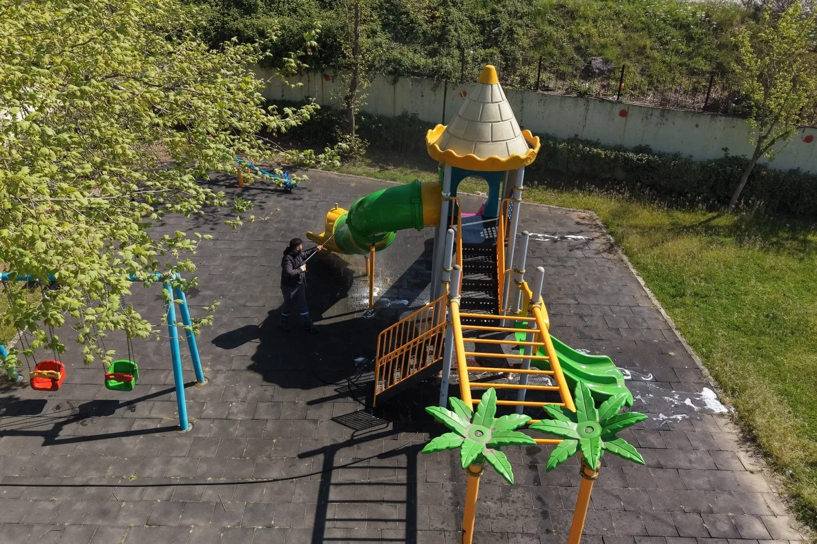 Çayırova’daki parkların oyun grupları yıkanıyor