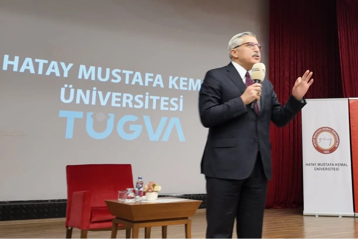 HMKÜ Rektörü Prof. Dr. Veysel Eren ve TÜGVA Hatay İl Temsilcisi Mehmet Emin Sağanak da programda birer konuşma yaptı.