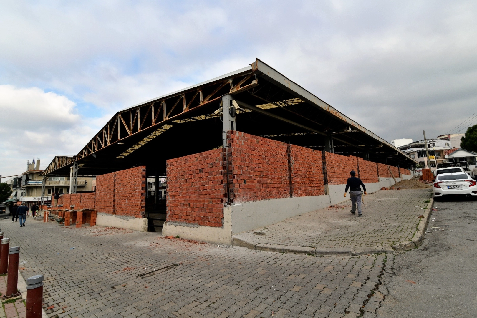 İZMİR (İGFA) - İzmir'in Bornova ilçesinde Atatürk Mahallesi Pazaryeri, özellikle kışın yağışlardan ve soğuktan, yazın ise güneşten korunmak amacıyla duvar örülerek tamamen kapalı hale getirilirken, tüm eksikler giderilerek pazar alanı daha kullanışlı hale getirildi.
