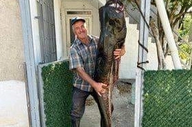 Erdoğan DEMİR / EDİRNE (İGFA) - Meriç ilçesine bağlı Hasırcıarnavut Köyünden Sabri Yılmaz isimli vatandaş Meriç nehrinden tuttuğu dev yayın balığı görenleri şaşırttı.