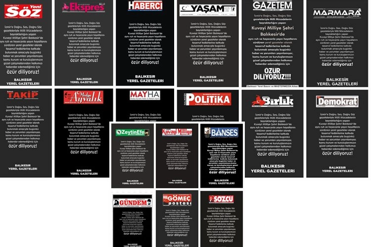 Yerel gazeteler, bugünkü gazete manşetlerinde ve internet haber sitelerinin manşetlerinde, “İzmir’e Doğru, Ses, Doğru Söz gazeteleriyle Milli Mücadelenin bayraktarlığını yapan Kuavyi Milliye Şehri Balıkesir’de aynı ruh ve heyecanla yayı  hayatlarını sürdüren yerel gazeteler olarak tasarruf tedbirlerine katkıda bulunmak amacıyla bugünkü haber ve yorumları yayınlamıyor, kamu kurum ve kuruluşlarımızın güzel çalışmalarından halkımızı haberdar edemediğimiz için özür diliyoruz. Balıkesir Yerel Gazeteleri.” ifadelerine yer verildi.