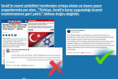 İletişim Başkanlığı, Türkiye’nin İsrail’e karşı uyguladığı ticaret kısıtlamalarının geri çektiği iddialarının dezenformasyon olduğu bildirdi.