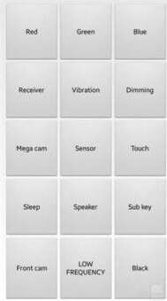 Telefonun test aşamasında kullanılan bu kodlar ile birlikte örneğin Red butonuna tıklayarak ekranı kıpkırmızı yapabiliyorsunuz.