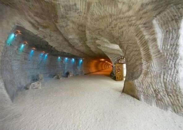 5 hektarlık bir alanı kaplayan tuz mağarasının duvarlarını 40 - 50 metre kalınlığındaki tuz katmanı oluşturuyor.
