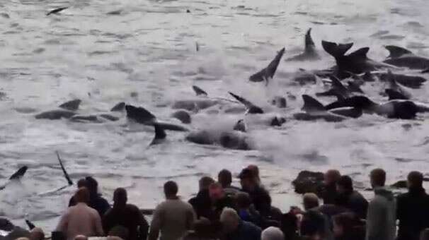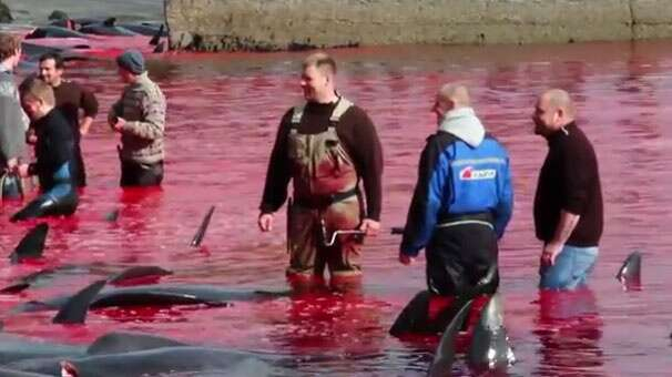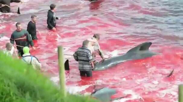 Kuzey Atlantik Denizi’nde Danimarka’ya bağlı Faroe Adaları’nda 300 yıldır gerçekleştirilen balina katliamı Avrupa dahil dünyadaki bir çok ülke tarafından tepki çekse de, bu yıl da yapıldı. Katılımcılar düzinelerce pilot balinayı vahşice katletti.