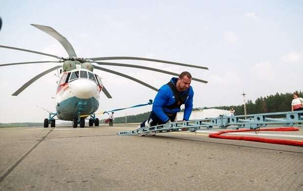 Belaruslu Kiril Shimko dünyanın en büyük helikopterini tam 20 metre boyunca çekerek Guiness Rekorlar Kitabı'na girmeyi başardı.