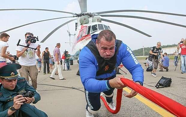 Minsk kentinde yapılan denemede Shimko, 28 tonluk dev Mi-26 helikopterini omuzlarına bağladığı iple tam 20 metre boyunca çekerek yeni bir rekor kırarken geriye bu görüntüler kaldı.