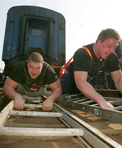 3 Mart 2007 - Yine Pavel Soroka ile birlikte 250 ton ağırlığındaki beş tren vagonunu 6,5 metre çektiler.
