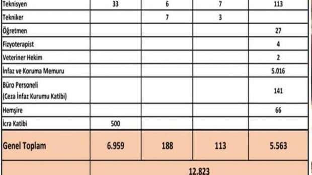 Adalet Bakanı Bekir Bozdağ, personel alımı ile ilgili bir tablo paylaştı.