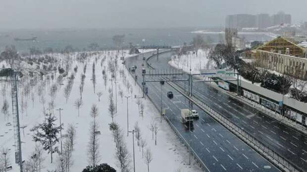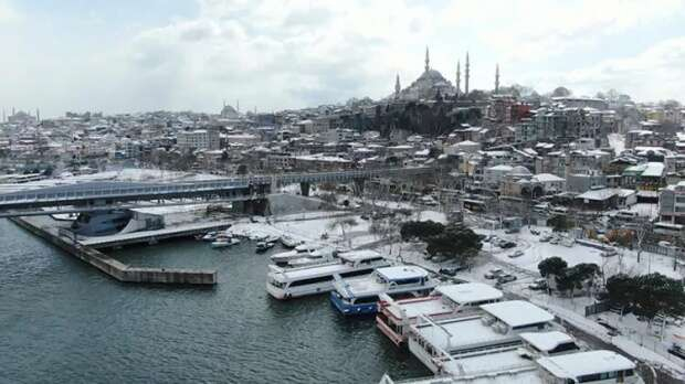 İstanbul'u kaplayan beyaz örtü havadan görüntülendi
