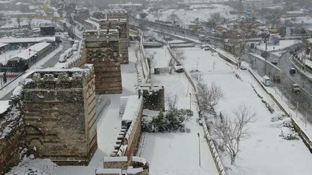 Beyaz örtüyle kaplanan parklar, çocuk parkları ise gün boyu boş kaldı. Yedikule, Topkapı surları, Zeytinburnu sahil parkları ve Eminönü havadan görüntülendi.