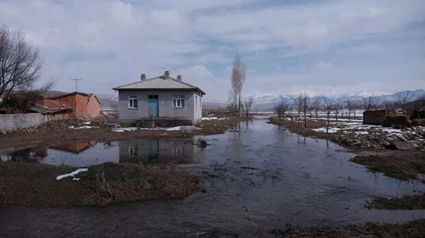 Bölge çiftçilerinden Mehmet Koçak ise “Çok kar yağdığı zamanlarda dağlardan gelen sular, her yıl burada birikiyor. Bazen evleri de su basıyor. Her yıl böyle kar yağmıyor ama ekilen ürünler boşa gidiyor” diye konuştu.