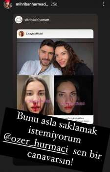 Ünlü futbolcunun avukatı, iddialarla ilgili yazılı bir açıklama yaptı: Mihriban Hurmacı'nın yaptığı paylaşımlar ve iddiaları gerçeği yansıtmamaktadır. 03.02.2022 tarihinde ise Mihriban Hurmacı geçirdiği sinir krizi sonrası müvekkilim Özer Hurmacı tarafından sakinleştirilmeye çalışılmış ancak bir türlü sakinleşmeyen Mihriban Hurmacı, müvekkilime saldırmış ve parmağını koparırcasına ısırmaya başlamıştır.