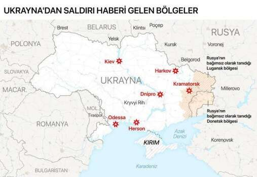 Rusya, Ukrayna'nın başta Dombas bölgesi olmak üzere Kiev, Odessa, Kharkiv kentlerine saldırı gerçekleştiriyor. Seyir füzeleri ve askeri olarak da harekata geçen Rusya Odessa'da da donanmayı vurduğu iddia edildi. Çeşitli askeri havaalanlarının da hedef alındığı bildiriliyor.