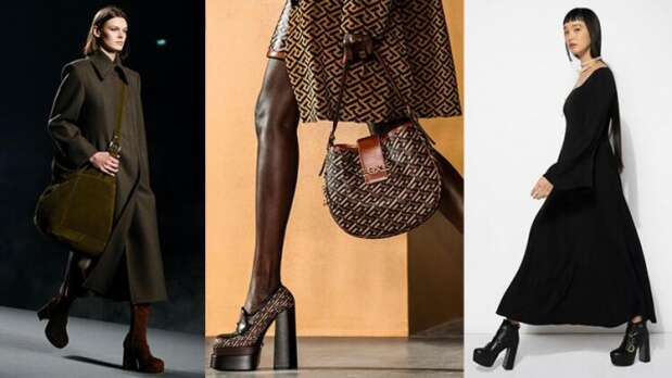 Minimalist ayakkabılardan sıkıldıysanız platform topuklular sizi kurtarmaya geldiler. Platform topuklar sizi yerden yükseltirken punk enerjisiyle modunuzu da yükseltiyor. - Fotoğraf: Alberta Ferretti, Versace, Adeam