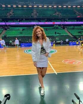 Zalgiris'in resmi televizyonunun spikeri olan Dalia Belickaite, maçı takip etmek üzere her zamanki gibi Zalgirio Salonu'ndaydı.