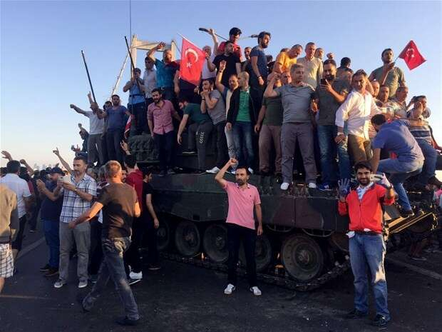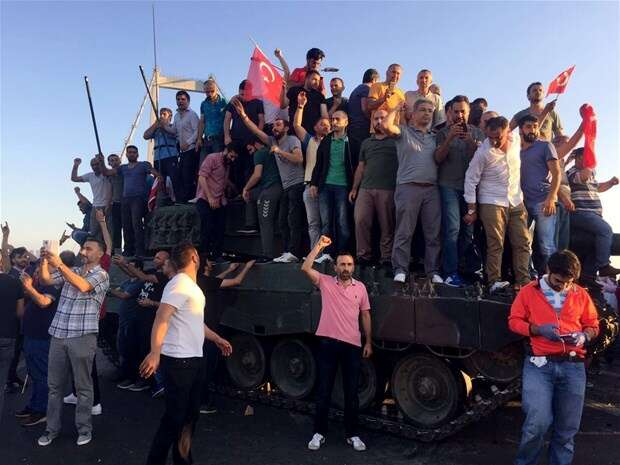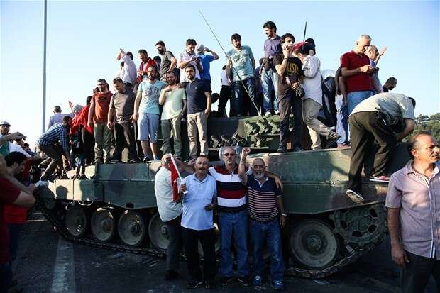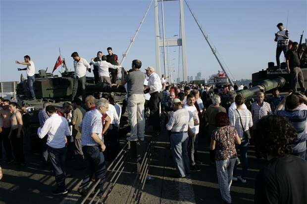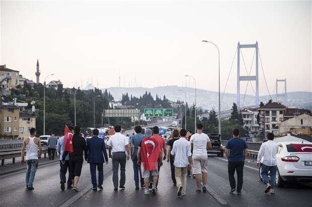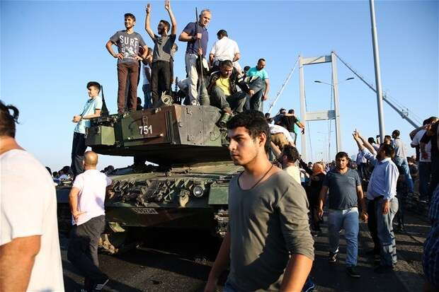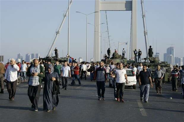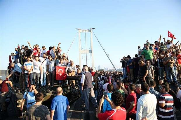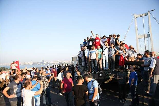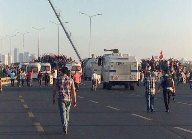 Boğaz Köprüsü'nü gece boyunca trafiğe kapatarak polisle çatışan askerler teslim oldu. Vatandaşlar tankların üzerine çıkarak sevinç gösterisinde bulundu