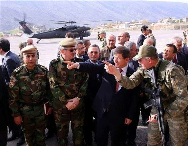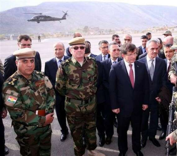 Başbakan Davutoğlu ve beraberindekileri taşıyan helikopterler Kuzey Irak'ta sıkı güvenlik önlemleri içinde yer değiştirdi.
