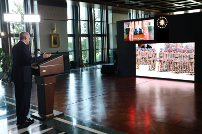 Cumhurbaşkanlığı Külliyesi'nden bir başka canlı bağlantı yapan Cumhurbaşkanı Recep Tayyip Erdoğan, Uzman Erbaş Komando Temel Kursu Mezuniyet Töreni'ne katılarak, 2 bin 94 mezun komandoyu tebrik etti.