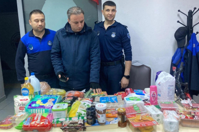 Vatandaşların aldığı market ürünleri ile birlikte Zabıta Müdürlüğü'ne getirilen dilencilerin İzmit'ten geldiği tespit edildi.