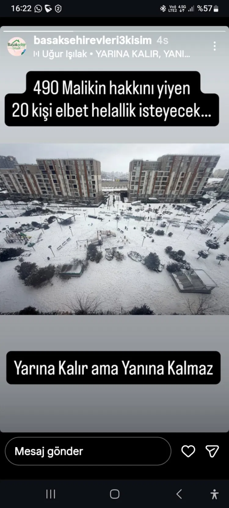 Ferhat YILDIRIM / İSTANBUL (İGFA) - İstanbul’un Başakşehir ilçesinde savcılık soruşturmasına konu olan Emlak Konut Başakşehir Evleri 1. etap 3. kısım site yönetimine yönelik tartışmalar, 31 Mart 2026 tarihli Resmî Gazete kararıyla yeni bir boyut kazandı. Kararla birlikte, aidat veya bütçe borcu gibi nedenlerle kişisel bilgilerin site panolarında, WhatsApp gruplarında veya benzeri platformlarda paylaşılmasının açık biçimde hukuka aykırı olduğu net biçimde ortaya kondu.