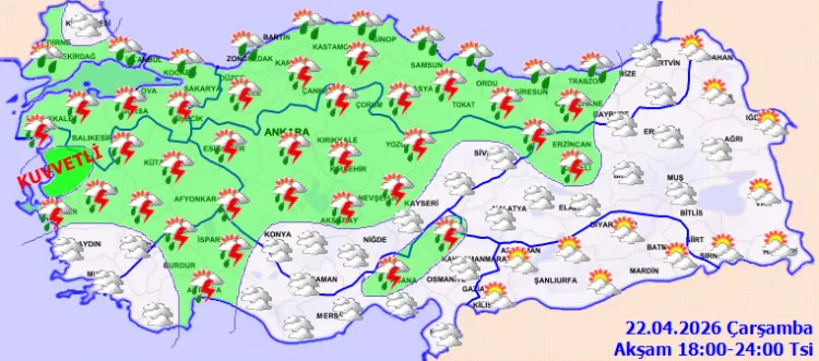 Marmara'nın güney ve doğusu, Ege'nin kuzeyi ve Batı Karadeniz'de beklenen yağışların yerel kuvvetli olacağı tahmin edildiğinden yaşanabilecek olumsuzluklara karşı dikkatli ve tedbirli olunması gerekmektedir.