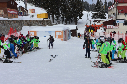 Bursa Uludağ’da öğrencilerin kayak keyfi