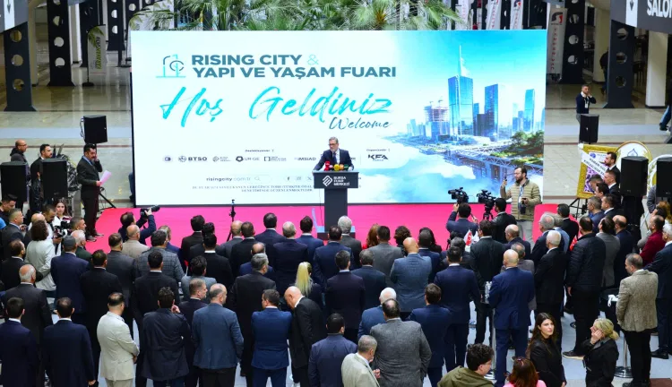 BURSA (İGFA) - Türkiye’nin üretim üssü Bursa, fuarcılıkta ve kongrede marka etkinliklere ev sahipliği yapmaya devam ediyor. İnşaat ve gayrimenkul sektörünü buluşturan Rising City Yapı ve Yaşam Fuarı, Bursa Fuar Merkezi’nde kapılarını açtı. 26 Nisan 2026 tarihine kadar ziyaretçilerini ağırlayacak fuarın açılış töreni, BTSO Yönetim Kurulu Başkanı İbrahim Burkay’ın yanı sıra Vali Yardımcısı Salih Altun, İMSİAD Başkanı Şeref Demir, Mimarlar Odası Bursa Şubesi Başkanı Şirin Rodoplu Şimşek, BESOB Başkanı Fahrettin Bilgit, BTSO Yönetim Kurulu, meclis ve komite üyeleri, ilçe oda ve borsaların başkanları ile sektör temsilcileri katıldı.