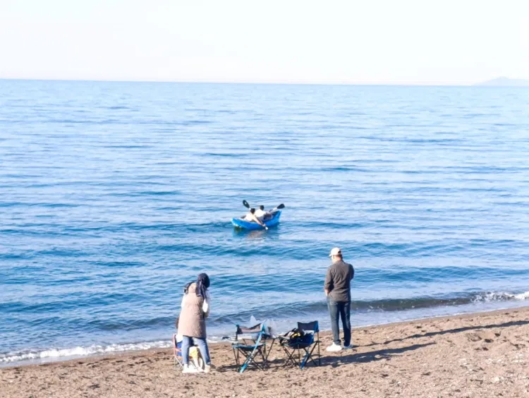 Bazı vatandaşlar deniz kenarında vakit geçirirken, kimileri ise denize girerek serinlemeyi tercih etti. Kano yapanların da olduğu sahilde yaz aylarını aratmayan görüntüler oluştu.