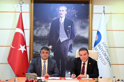 ANTALYA (İGFA) - Antalya Büyükşehir Belediye Başkanı Muhittin Böcek, Belediye İş Sendikası Antalya Şube Başkanı Mehmet Mercan ve Güvenlik İş Sendikası Antalya Bölge Başkanı Recep Mutaf ile 1 Ocak 2025- 31 Aralık 2026 tarihleri arasını kapsayan Toplu İş Sözleşmesi Protokolü imzalandı.