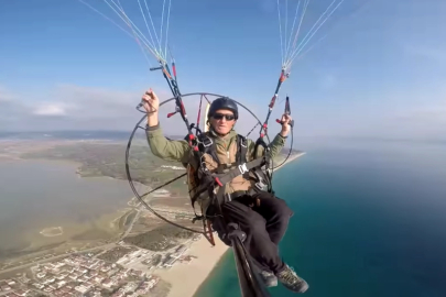 Erdoğan DEMİR / EDİRNE (İGFA) -  Keşanlı paramotor pilotu Yılmaz Özkaya, Saros Körfezi üzerinde anlamlı bir uçuş gerçekleştirdi.