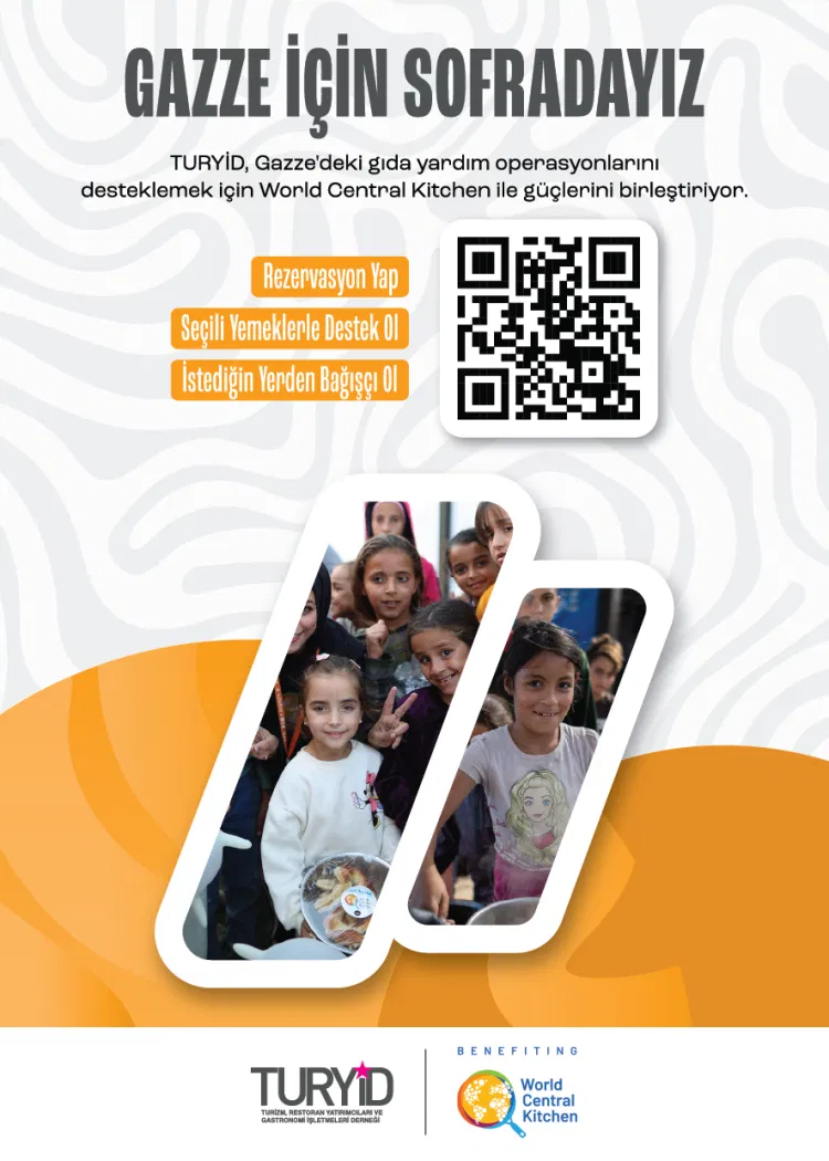 Restorandan bağış modeli kapsamında gerçekleşecek Türkiye operasyonu ile TURYİD üyelerinin, üye olmayan işletmelerin ve misafirlerin katkılarıyla WCK'nin küresel çapta yürüttüğü Gazze çalışmalarına destek sağlanması hedefleniyor.